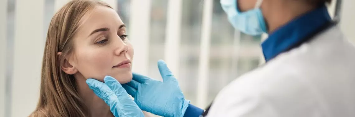 - powiększone lub tkliwe węzły chłonne szyjne przednie;