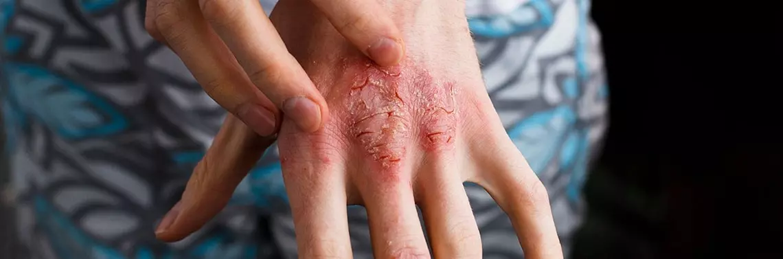 Ryc. 1. Nadkażone bakteryjnie zmiany wypryskowe u 10-letniego chłopca