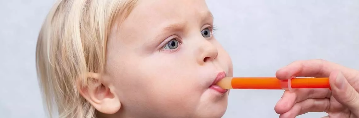 Najbardziej rekomendowaną miarką dla płynnych pediatrycznych postaci leku jest skalowana strzykawka doustna. Umożliwia ona dokładne odmierzenie dawki, a także zmniejsza prawdopodobieństwo pozostawania płynu na ściankach, a co z tym związane, ewentualnych strat leku [2]. Strzykawki doustne zaprojektowane są w ten sposób, by nie dało się na nie nałożyć igły, gdyż stwarzałoby to niebezpieczeństwo, że lek w formie płynnej zostałby podany nie doustnie, a podpoliczkowo. Zdarzały się nawet przypadki podania syropu pozajelitowo, dożylnie przez wenflon. Ciekawy jest również fakt, że podanie leku strzykawką do jamy ustnej pozwala również zmniejszyć nieprzyjemne odczucia smakowe.
